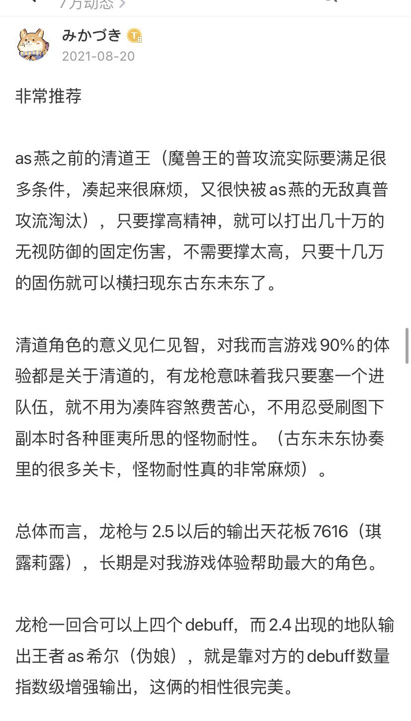 用as燕清道过久,忘了当年龙枪带我扛过了萌新期。我以前评价过。