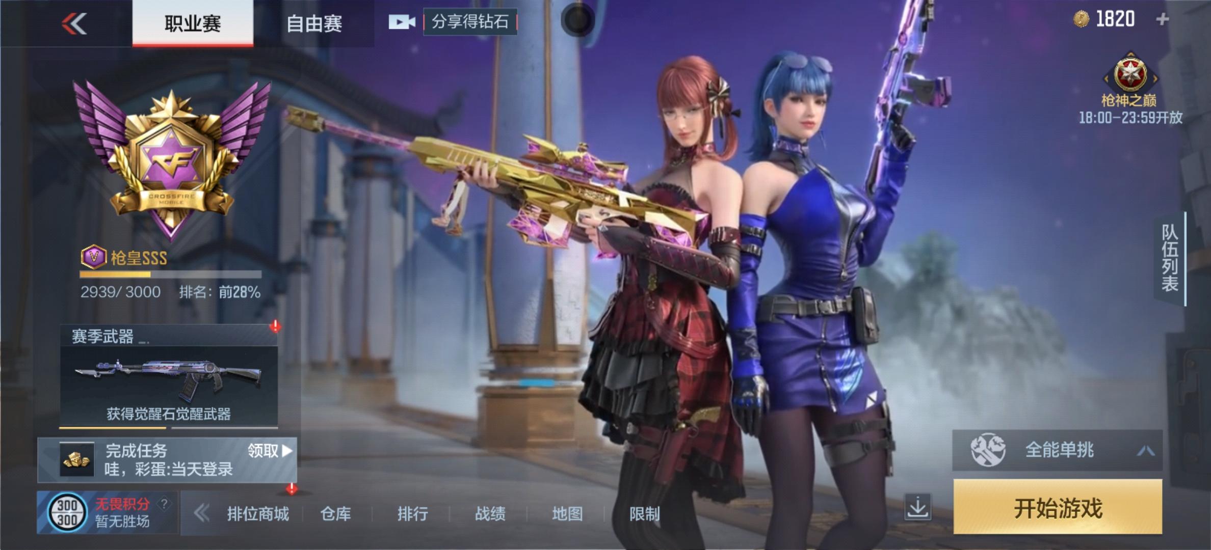 2. 设置玩家板块排名,分别建立经典战、刀战、狙战、手枪战、钢枪战板块排名奖励,一来可以带动大家的活跃度,还可以激发玩家冲榜的动力,在结合上文提及的“开局即锁定武器”,部分玩家即可形成对某板块的忠实度,与此同时武器数据同步到武器战力!