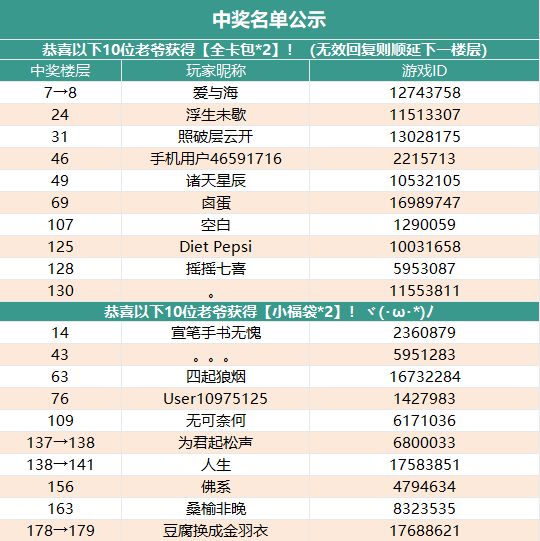 如果名单中游戏ID有误或对获奖有疑问的都可以联系我们的客服小伙伴寻求帮助~(qq:2853302520)