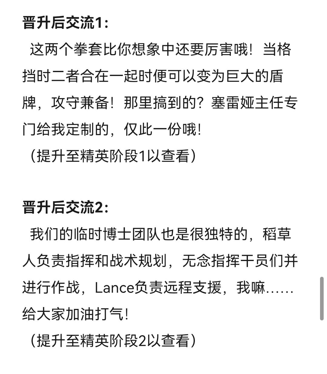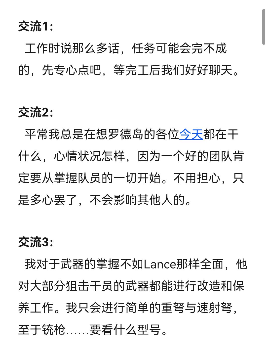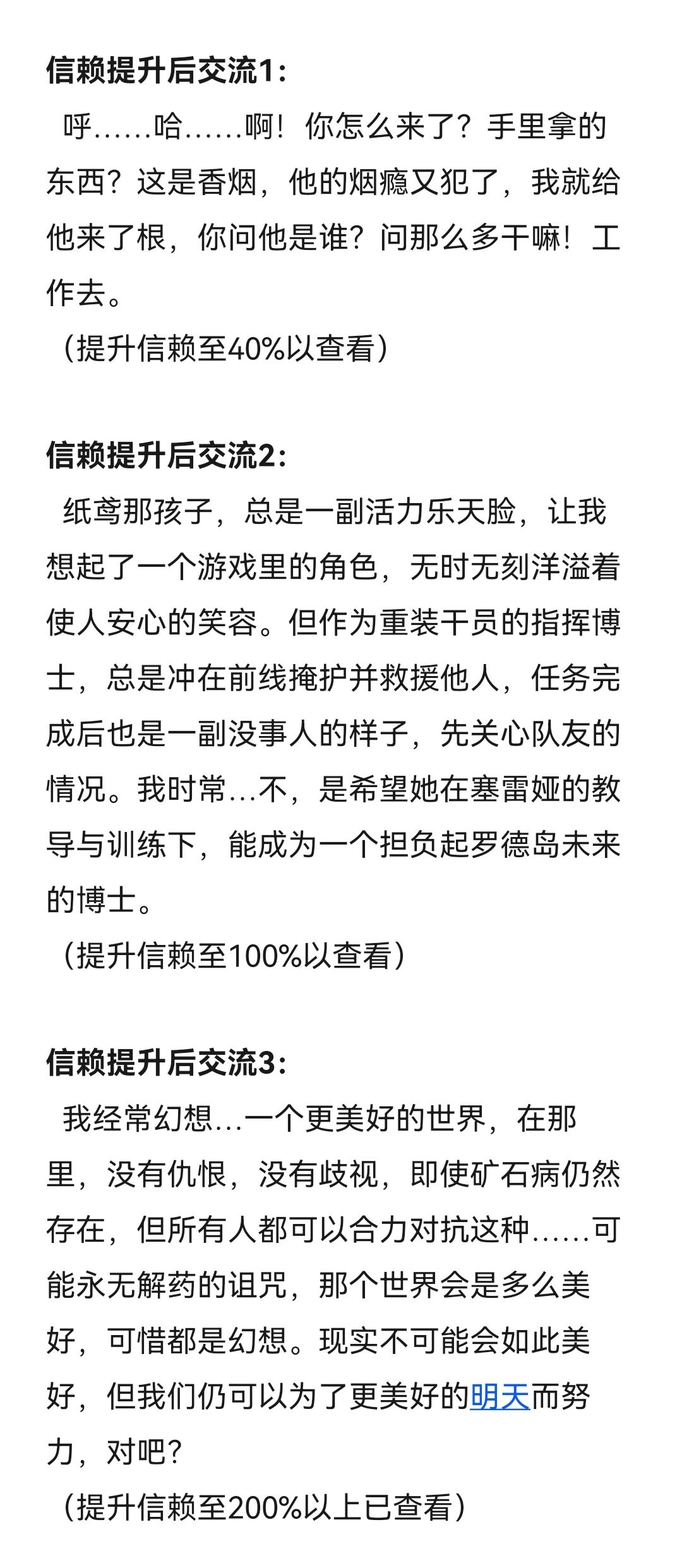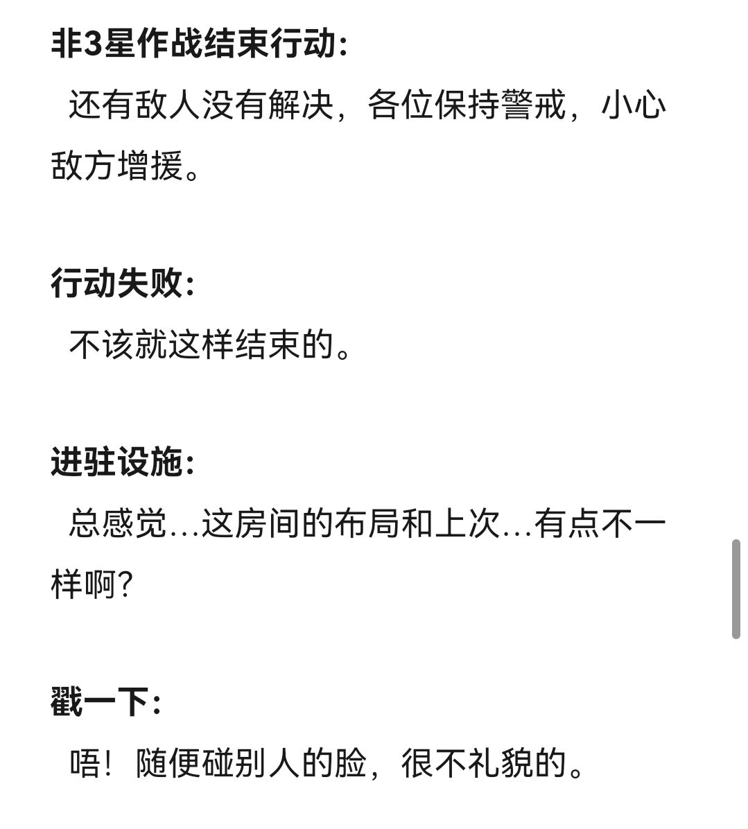 然后……提一嘴,写这种语音记录真的比我想象中还要困难,通过对话来表现出角色的特点、性格、爱好等确实困难。但总算完成了,这次对我来说也是一个新的尝试,我也很期待下部作品依然能让各位喜欢。