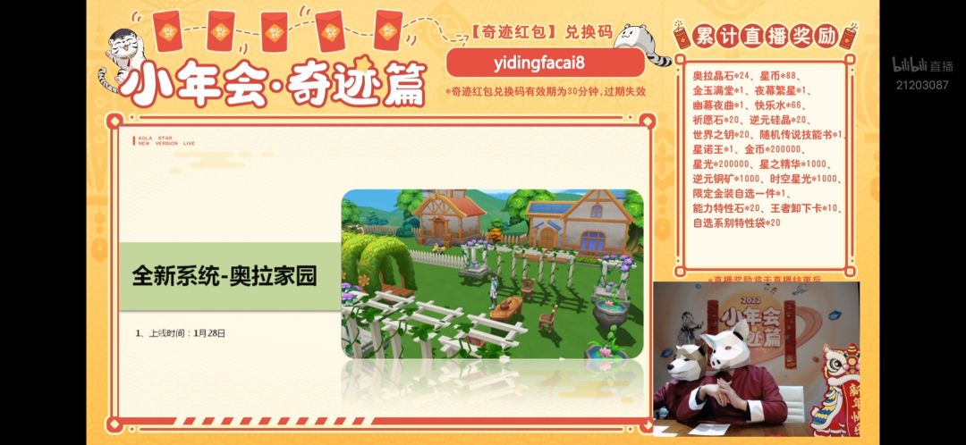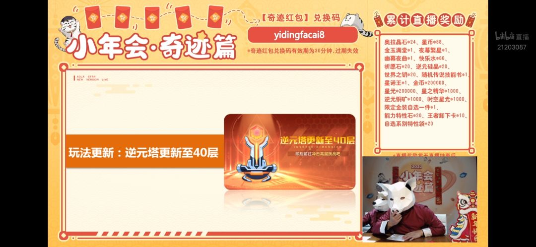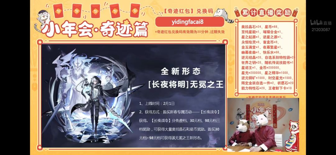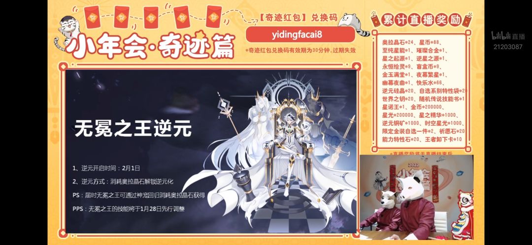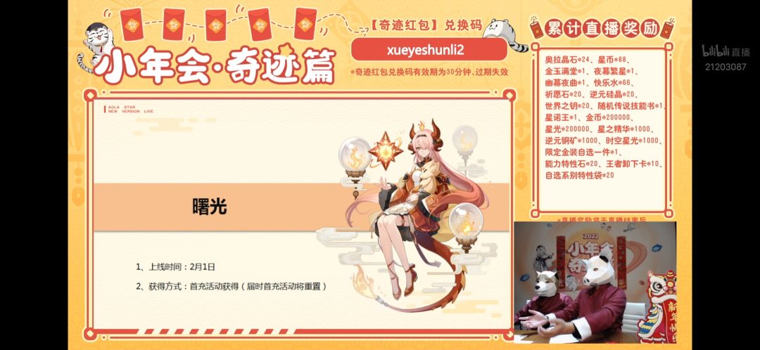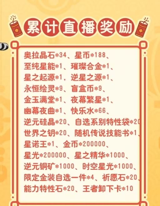 ⑴直播奖励会以邮件的形式在【游戏里】发给大家,看不看直播都有