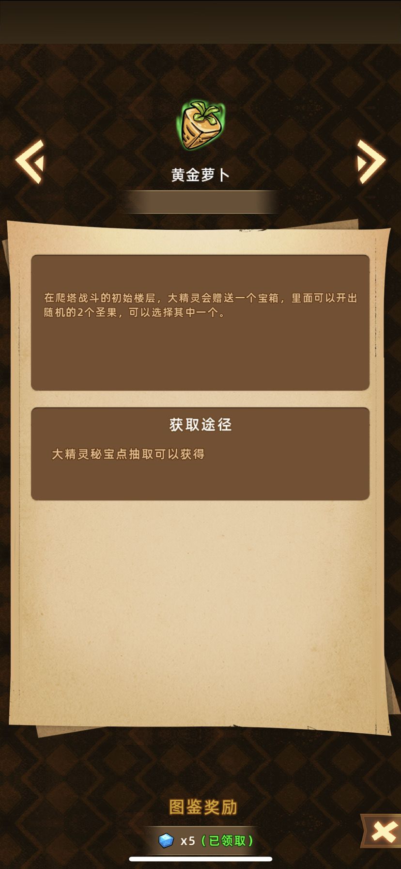 5,黄金萝卜:随机圣果选一个,级别越高可选择性越多,前期拿一个好圣果过关效率事半功倍