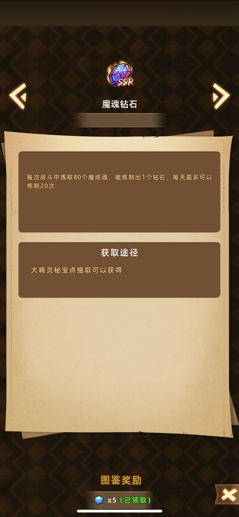 1,魔魂钻石:每天可以额外产出一些蓝钻,硬通货,干啥都少不了蓝钻,一直都缺,省着点用,如果不是十连20黄这种的欧皇,蓝钻尽量不要十连抽武器,每天买3张许愿券许愿,掏空池子拿迷你精灵