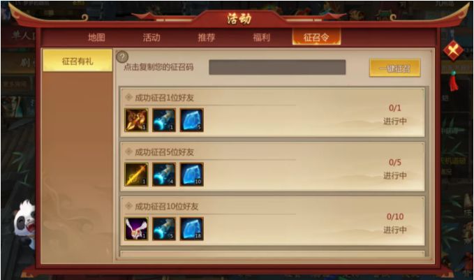 1月26日起,登录《梦三国手游》,在活动-征召令页面复制属于你的专属征召码,让你的好友填写你的征召码并且一同完成任务即可获得奖励。