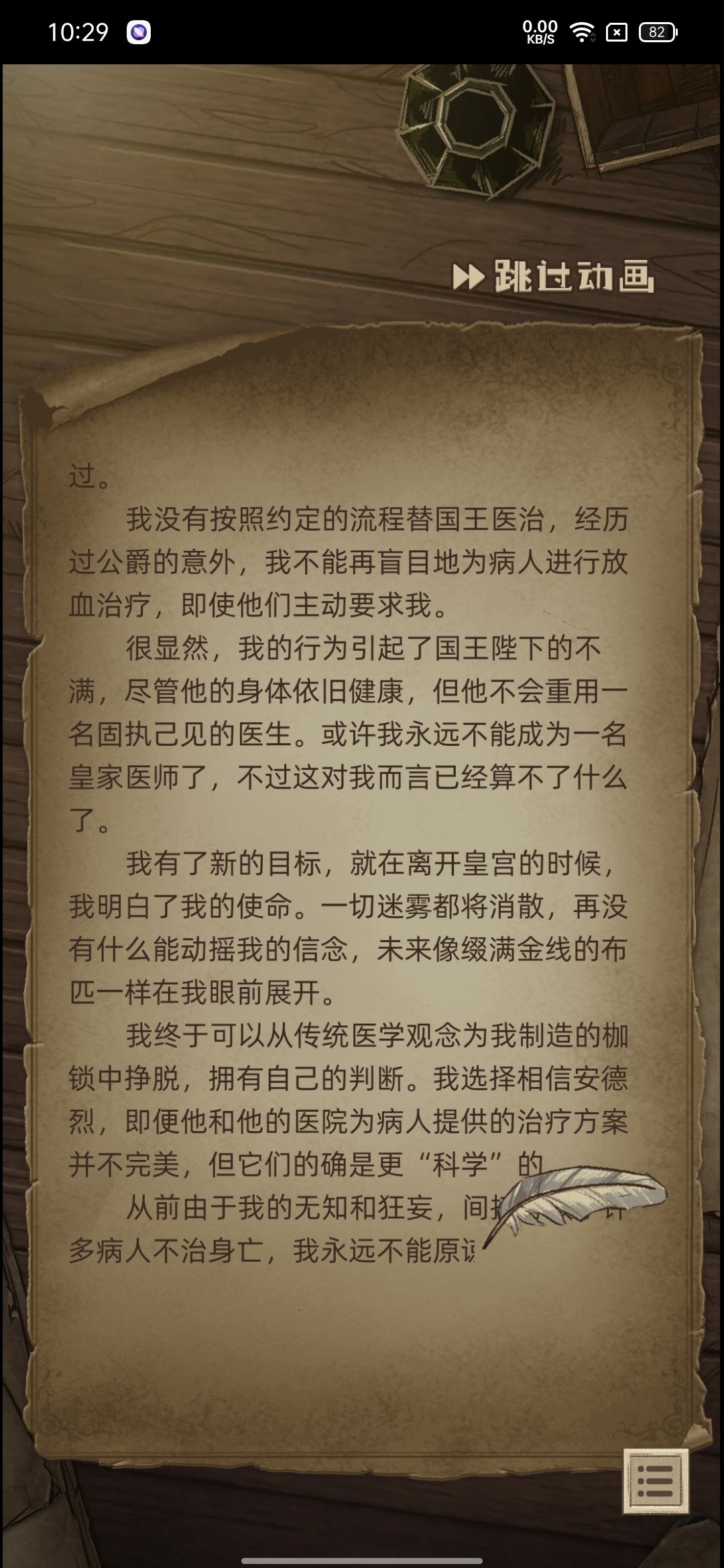 非常好的一个游戏,我前期在思考站在哪个立场,但这个游戏只有两个选择,是成为皇家医师还是革新,只能二选一,我想自己独立研究,可是剧情不允许。但这个游戏剧情是很好的,绘画也非常不错,值得推荐。😛