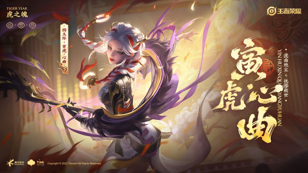 【杨玉环-寅虎·心曲】史诗品质限定皮肤,标签为“虎年限定”,皮肤将于2022年1月31日(除夕)0点上线,至2022年4月6日 23:59前于商城限时出售。首周价格:710点券(首周后价格为888点券)
