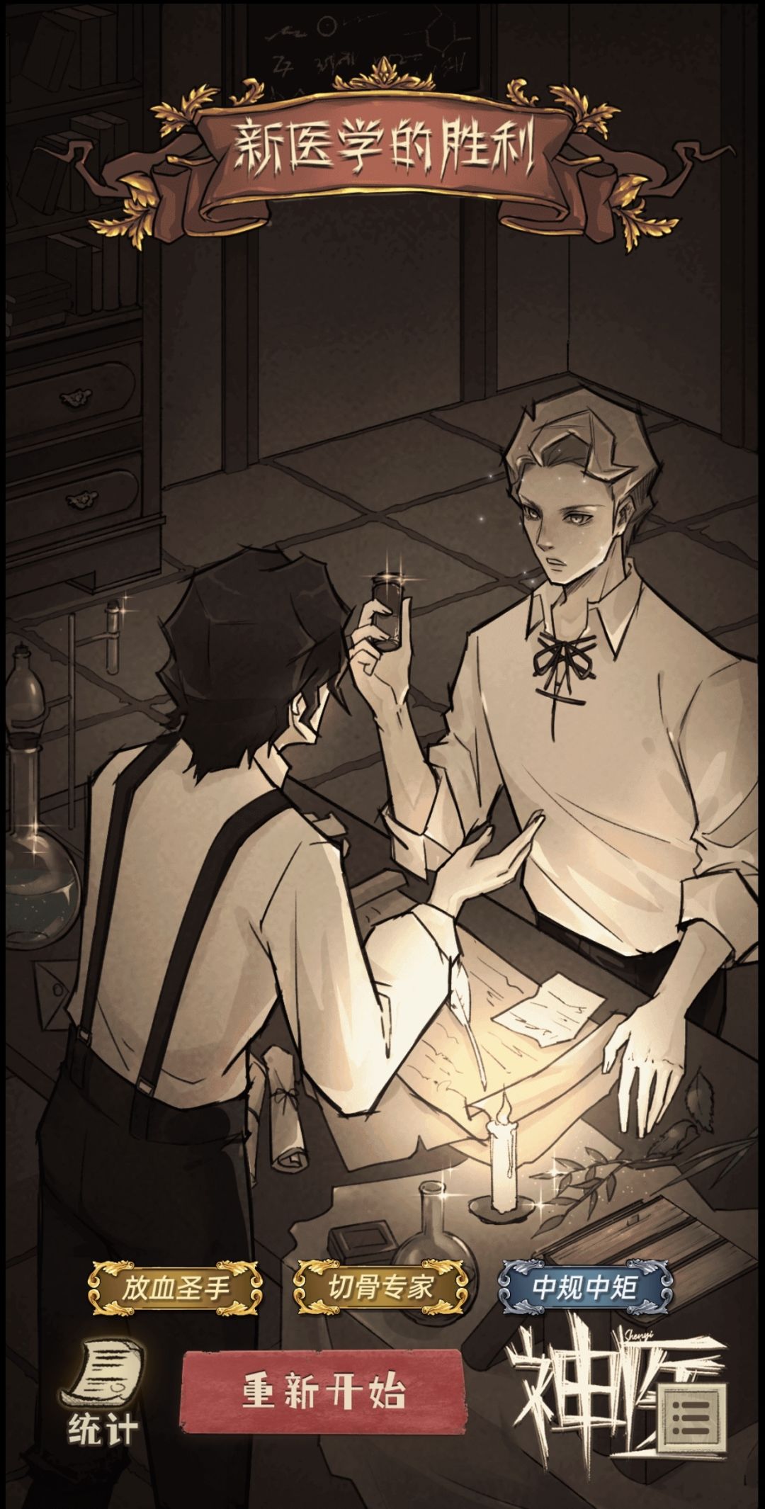 如果一开始怂的一批,决定顺从国王,最后就是这个结局了。感觉跟傀儡一样被操纵,最后又变成了操纵者。但是夏特莱最后的话,让我忽然觉得,赛奥多年轻的时候或许也是这样走过来的,而他的学生夏特莱最终与他一样。但是有一说一,夏特莱拿着手术刀背光反派笑的样子,有点帅。