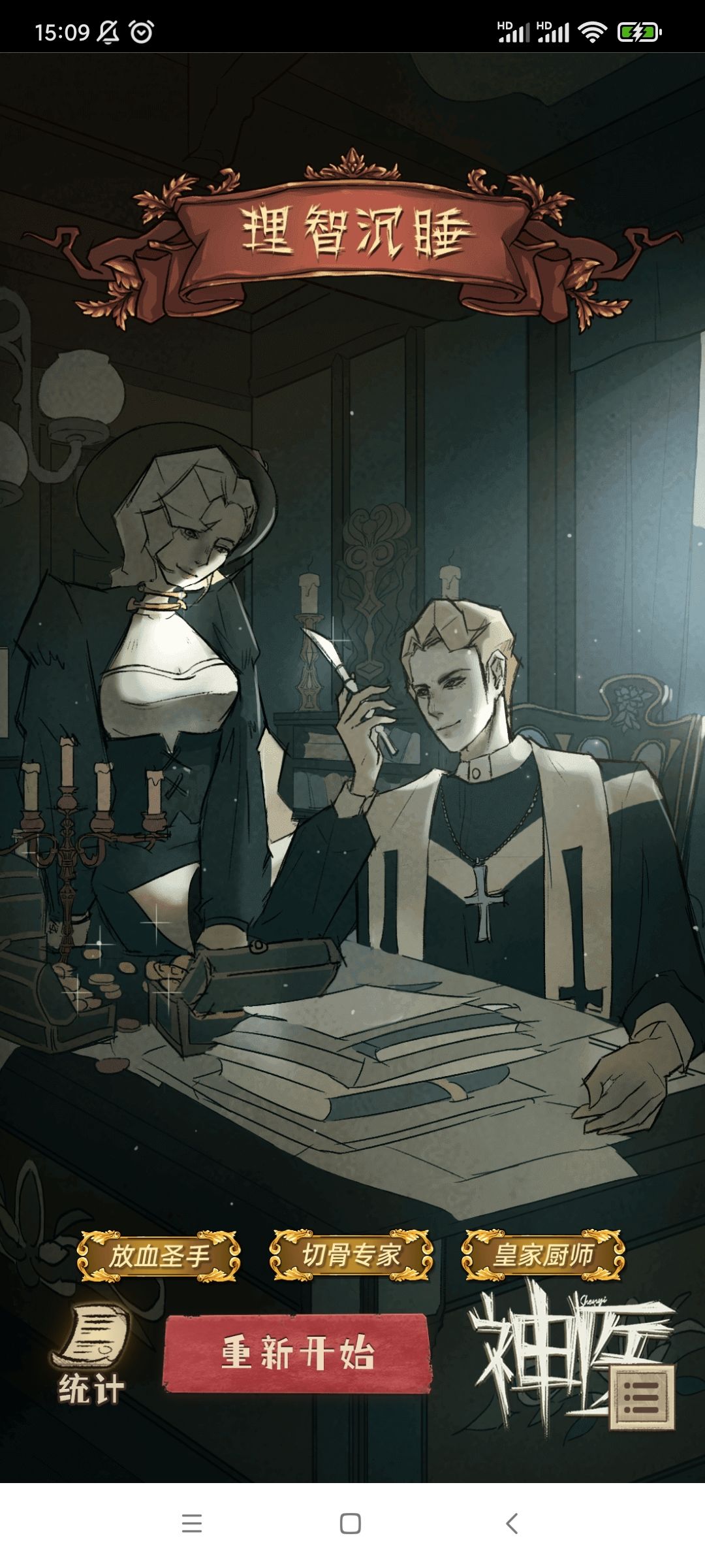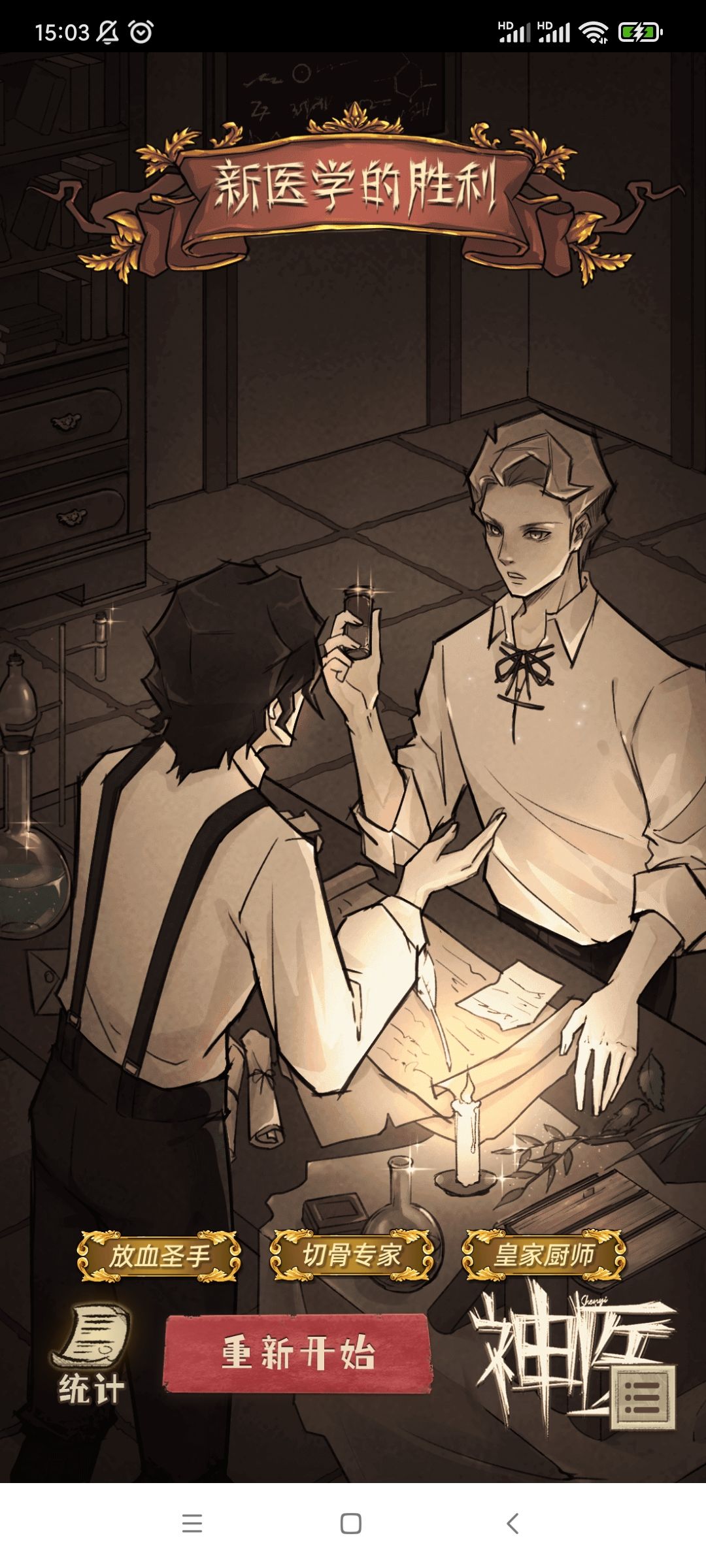 理智沉睡这个结局……只取决于最后是否顺从国王的心意,个人认为单薄了一些,如果在前期的各种选择里都选择了新医学,最后却因为成为了皇家医师,而维护旧医学几十年,也太悲哀了,在最后暮年也没能推新医学一把。前期的夏特莱虽然不同于他的导师,但是导师对他的恩情以及赛奥多导师的遗言的影响,是有可能让他放弃革新、维护旧医学的。所以我认为,如果在安德烈来刺激夏特莱的时候,选了守旧,最后再理智沉睡,是合理的,如果选了革新,最后却因为成为皇家医师而拼命打压革新人士,稍微有一些奇怪,这时的夏特莱,可以逃去其他国家,也可以当着皇家医师,最后再暗中帮革新派一把,可能会更好一些。梅尔最后到底怎么样了,在这个结局里也很难猜测,要是能完善一下就更好了。