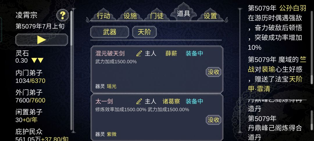 第一个是武力神器,第二个是修炼和武力神器