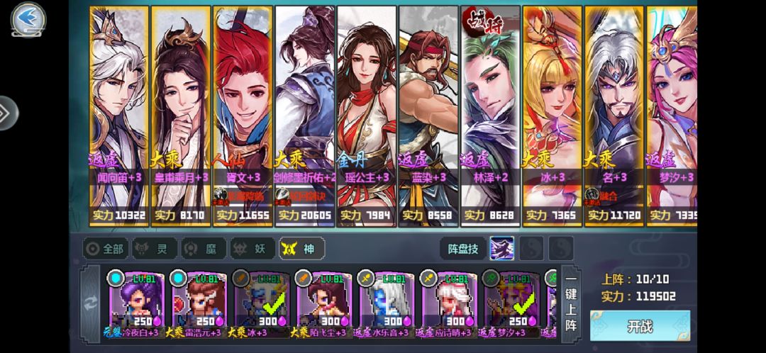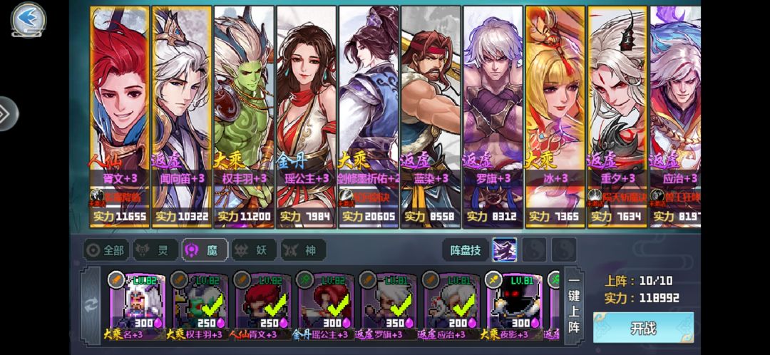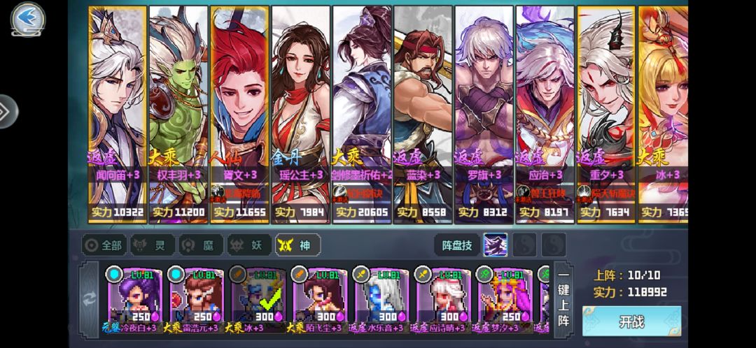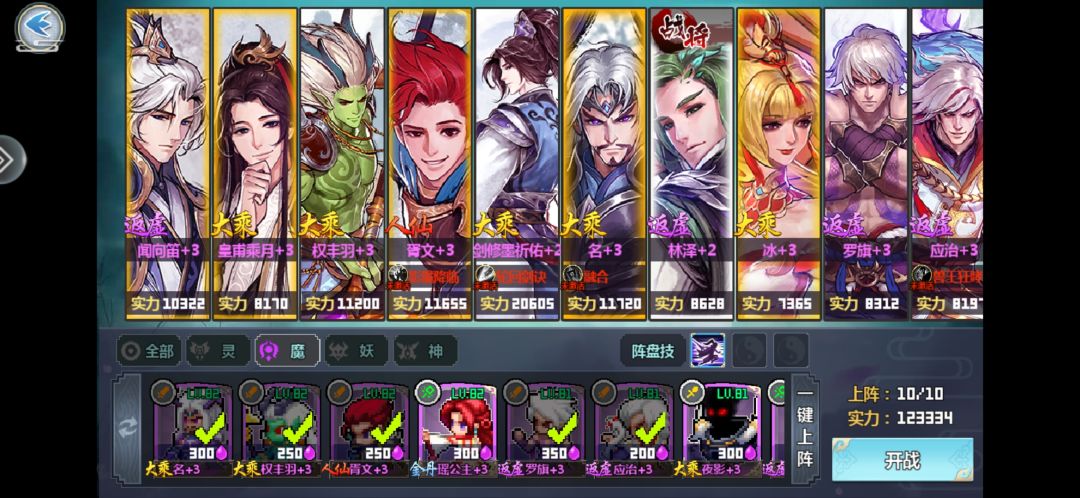 瑶:仙妖魔增伤真决(必备),其余真决非必须,建议搭配攻速真决,阿瑶本身输出也是几十万的呢。神增伤真决不需要因为瑶上场时机过早,此时场上还没有神类伙伴。