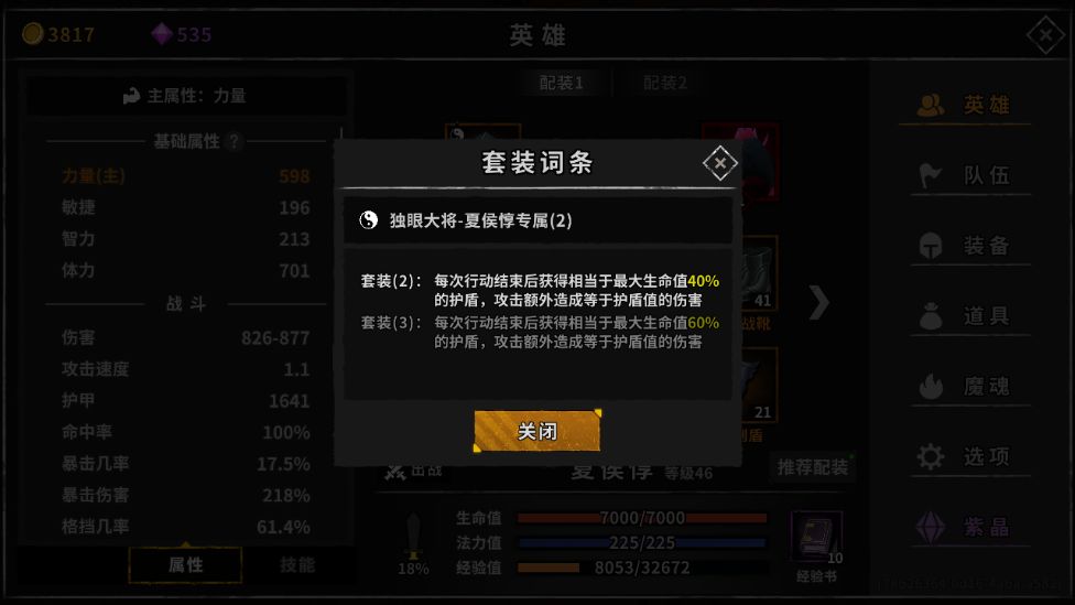 成功推掉1层BOSS,是个好的开始。TIPS:前期夏侯惇没有两件套时,开场能开个大出来就能提高很多容错,所以打boss时候夏侯惇是可以带个兔子的