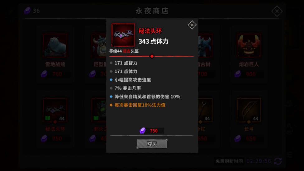 刷新一次又刷到这个,符合我现阶段的需求,有攻速有暴击,回蓝甚至都可以暂时留下,不过750水晶,我今天能刷的出来吗?搞不好要等明天了