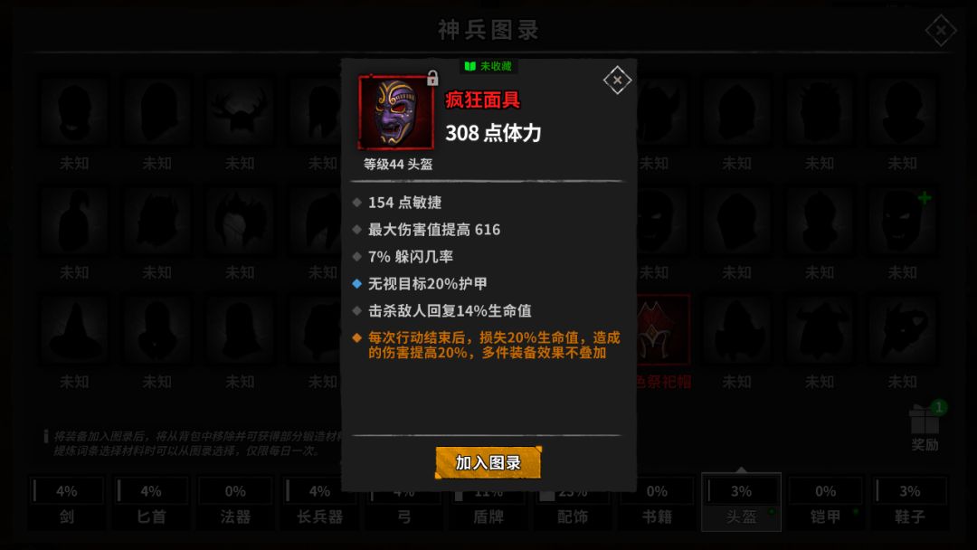 日常本爆了疯狂面具,这个是关键词条,先挂上图鉴