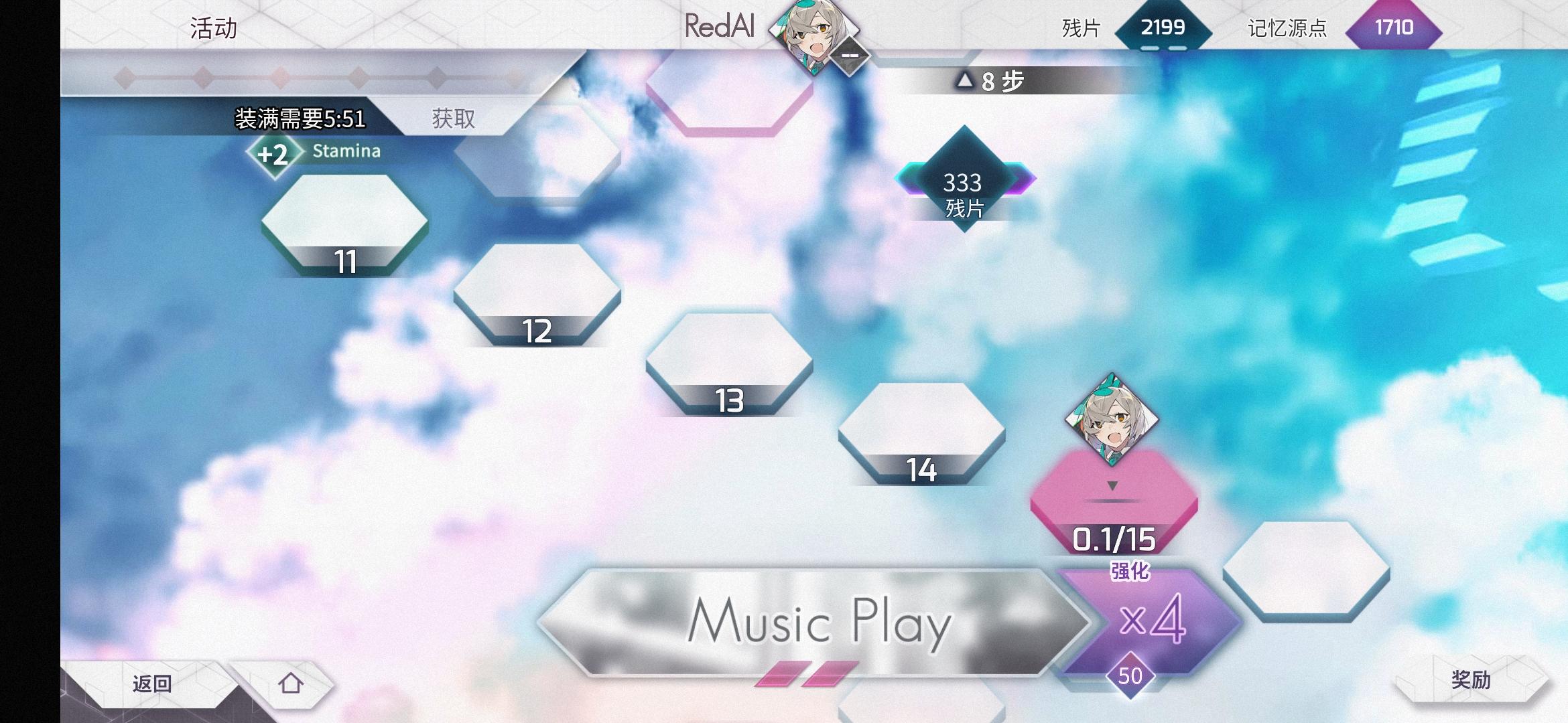 还剩105.1步,彩梦一次16步要爬7次,如果算上升级之后的加成其实也差不多6次多一些。嘛所以今天一定能拿下这个梯