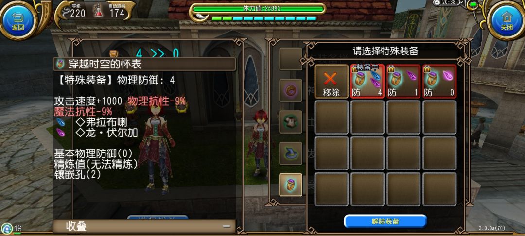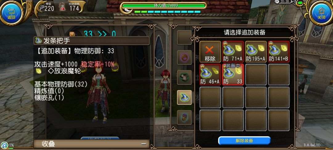 衣服有小恶魔衣最好,王掉士兵其次。(我用的铁匠铺比王掉少了250攻速)单孔就行,王石漂漂妈、死菇随意。