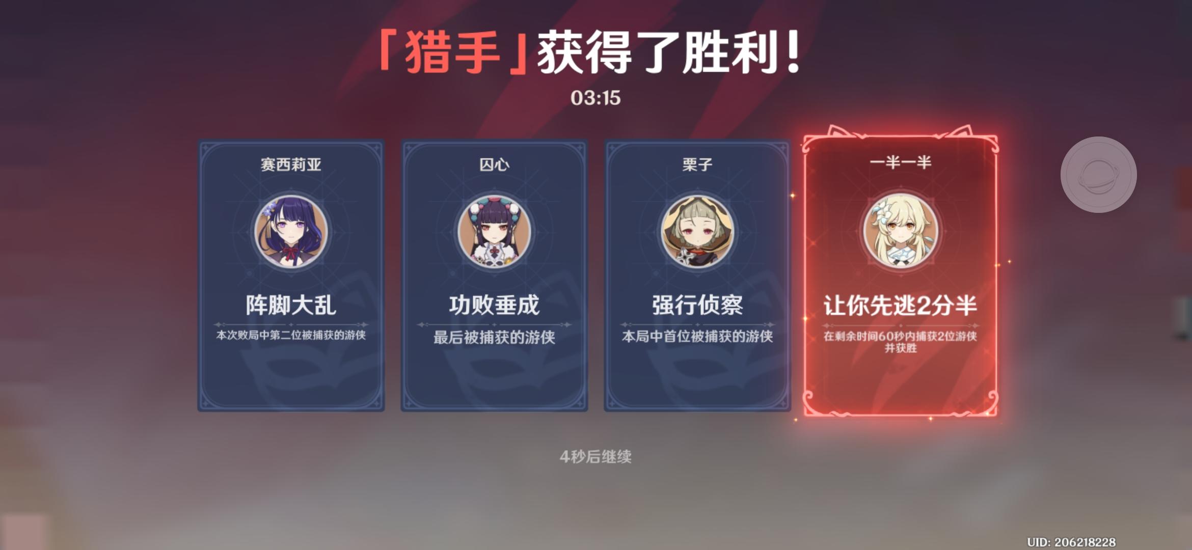 活动圆满,基本上把把都赢。这个“让你先逃2分半”太有意思了
