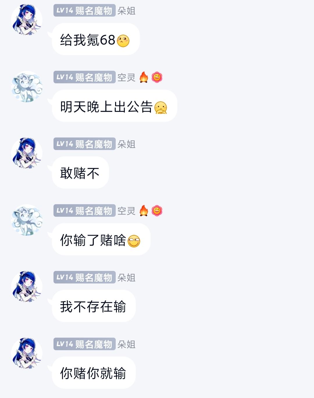 朵姐今天还给四个帖子回帖,其中一个是我呦,帮助官方辟谣一次;在群里和群友因为小黑和米莉姆的伤害吵了好几架,最后好像吵架没赢;和群友打赌想赢68块钱被群友识破了,没有赚到钱;被群友爆照一次,双马尾好可爱呀;骂人37次,看起来好像很生气;想找客服反映bug,结果不知道怎么找客服,我这有客服QQ好友,可惜朵姐不找我帮忙,有点伤心,以为能帮到它的;把我从小黑屋放出来回复我一次,可见我的甜蜜攻势已经初具效果,它冰封的内心整逐渐消融,幸福的未来正向我招手😄😄😄😄😄😄。