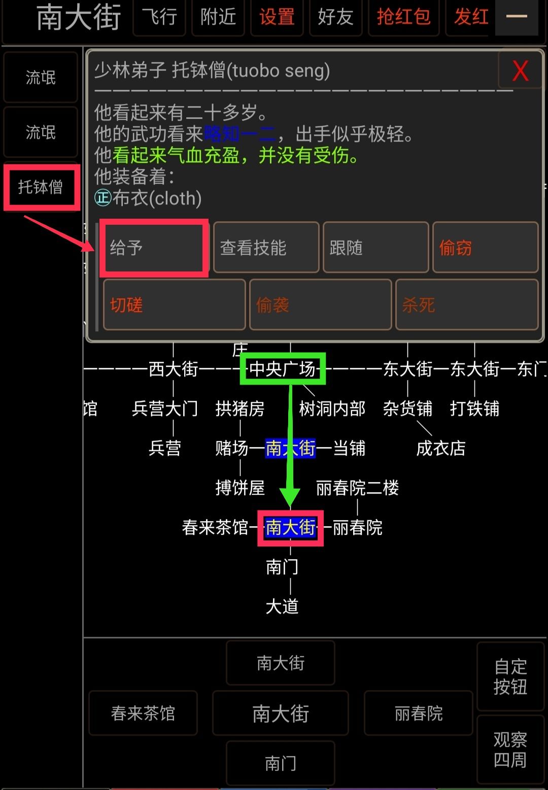 来到扬州南大街,找到[托钵僧]→点击[给予]→[黄金1两]。