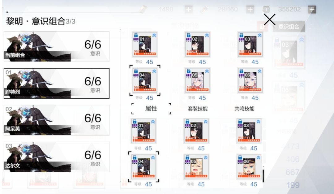 建议在选取意识四件套组合前先询问自己的教官或去意识图鉴中熟悉一下意识四件套效果