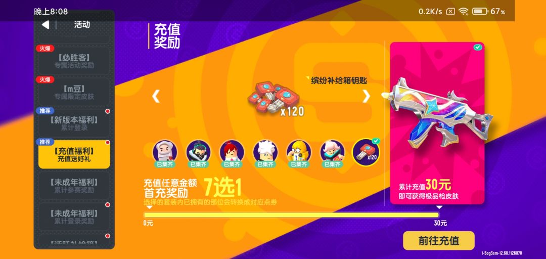 我首充是在s3赛季在之后赛一直充值,这个首充礼包算以前等于白嫖。官方送的120缤纷补给箱钥匙加上420个等于540,十连竟然没出雷霆子皮肤😭