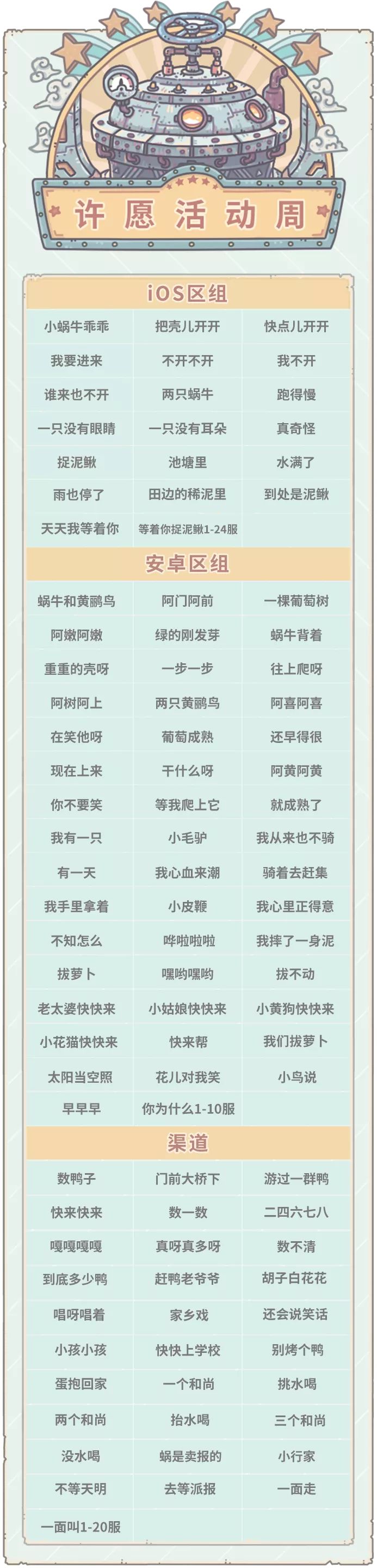 本周五(1月28日)凌晨五点,部分服务器活动将更新为大祈愿之阵,以下是进入周活动的区组。