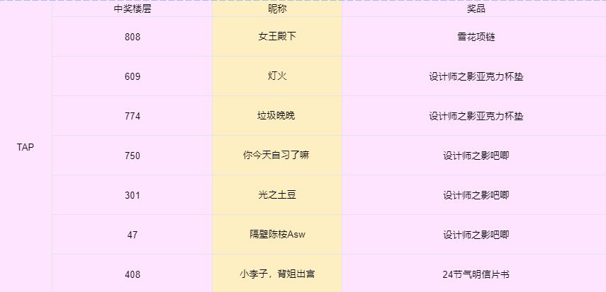 请对应楼层的搭配师在2022年3月20日前添加叠纸福利小助手,添加小助手QQ时请备注:社区名称+获奖昵称QQ:1917924997,提供详细地址。我们会在收到地址的7-10个工作日内寄出哦~