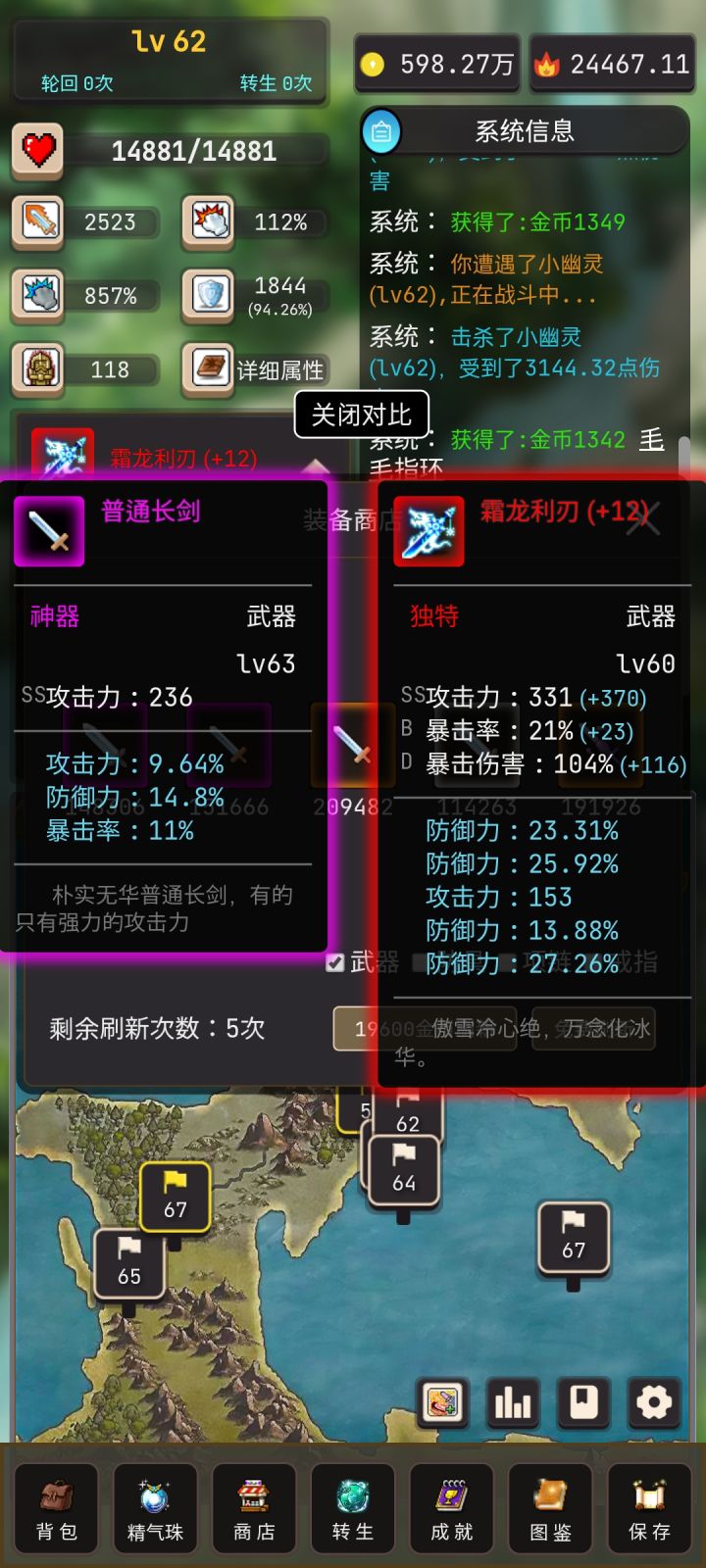 然后商店免费刷新,当你满五次刷新时,你刷新一下你的第一次冷却时间为五秒,所以,千万别刷新第二下,等五秒再刷新,卡住五秒这个冷却时间,这样你就可以五秒一刷,看看上述的两个武器,没有就等时间过去再刷。下方是第一次刷新时的冷却时间。