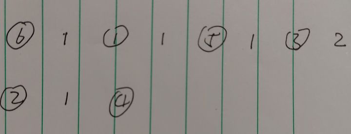 简单来记就是:⑥1①1⑤1③2②1④