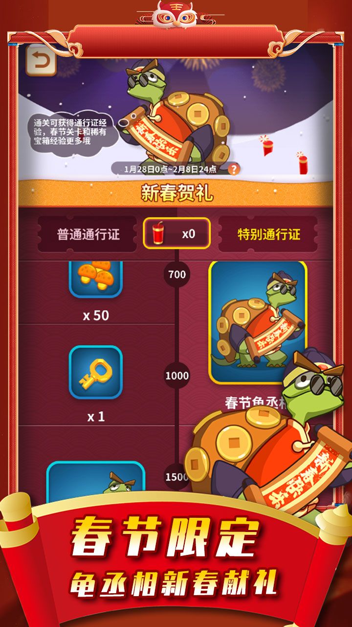 1、通关可获得通行证经验,春节关卡和稀有宝箱经验更多。