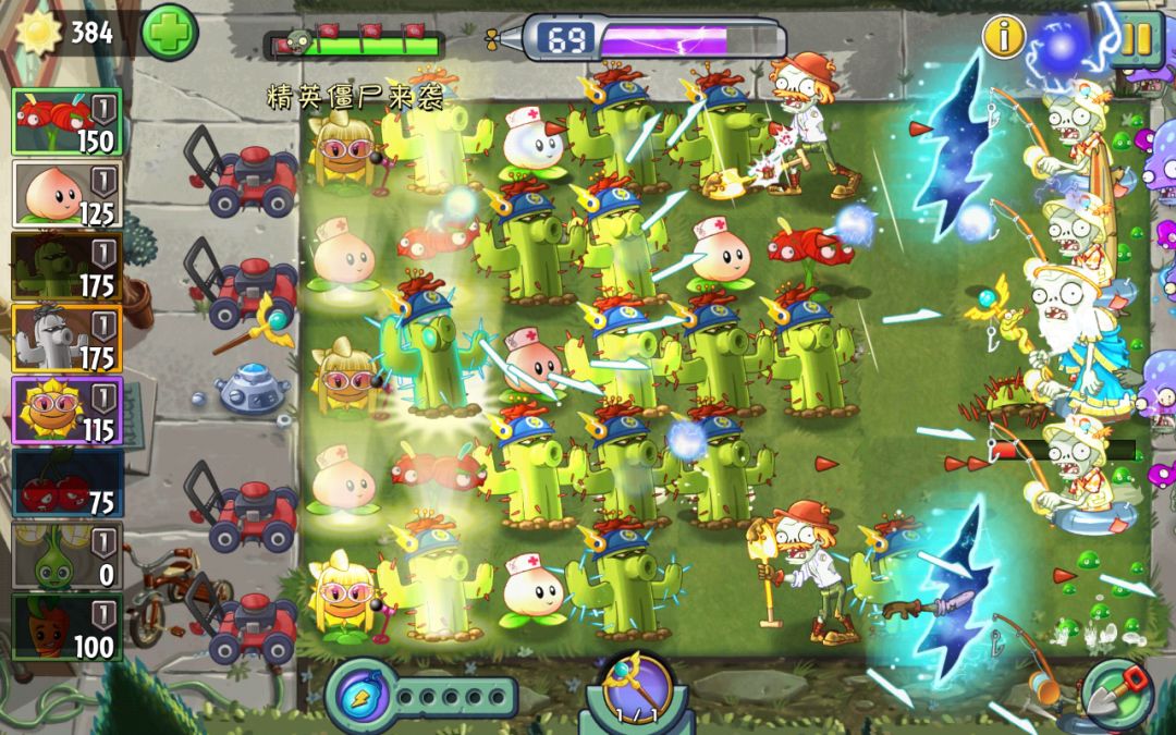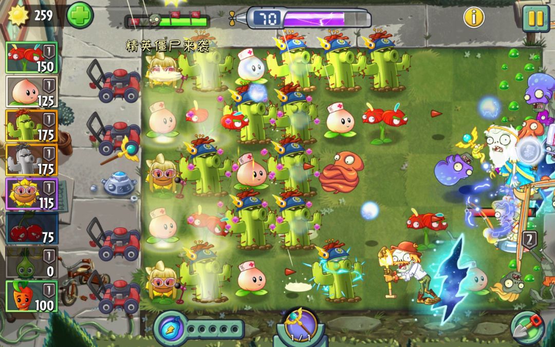 植物大战僵尸2回忆之旅普通模式最后一关攻略。精英僵尸威胁不大,章鱼哥和渔夫僵尸用樱桃炸死,铲子僵尸会被酸雨给……(后面自己脑补。)多种仙人掌,铲子僵尸前狂种植物耗它时间让它被酸雨搞死,然后等待游戏胜利就行了。