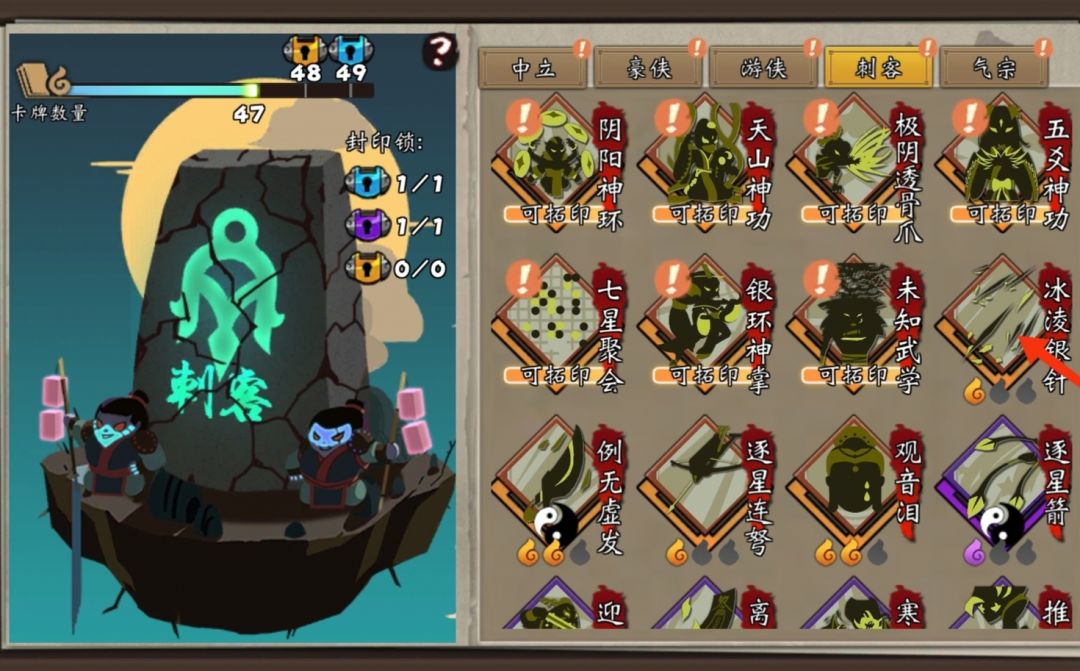 刺客石碑拓冰凌银针和玉蛇锥(我没武侠拓不了),得一把橙锁,锁冰凌银针.