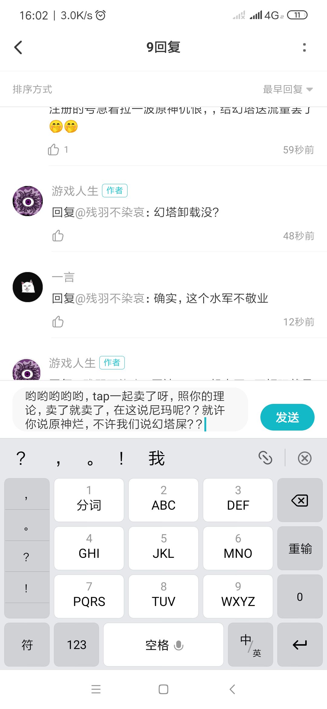 你这水军抗压能力不行啊,,我不就说了一句话么,,咋破防了呢🤭🤭刚把原神卸载tap号卖掉就急不可耐的建个游戏时长为0的小号给幻塔洗地是吧😆😆😆,
