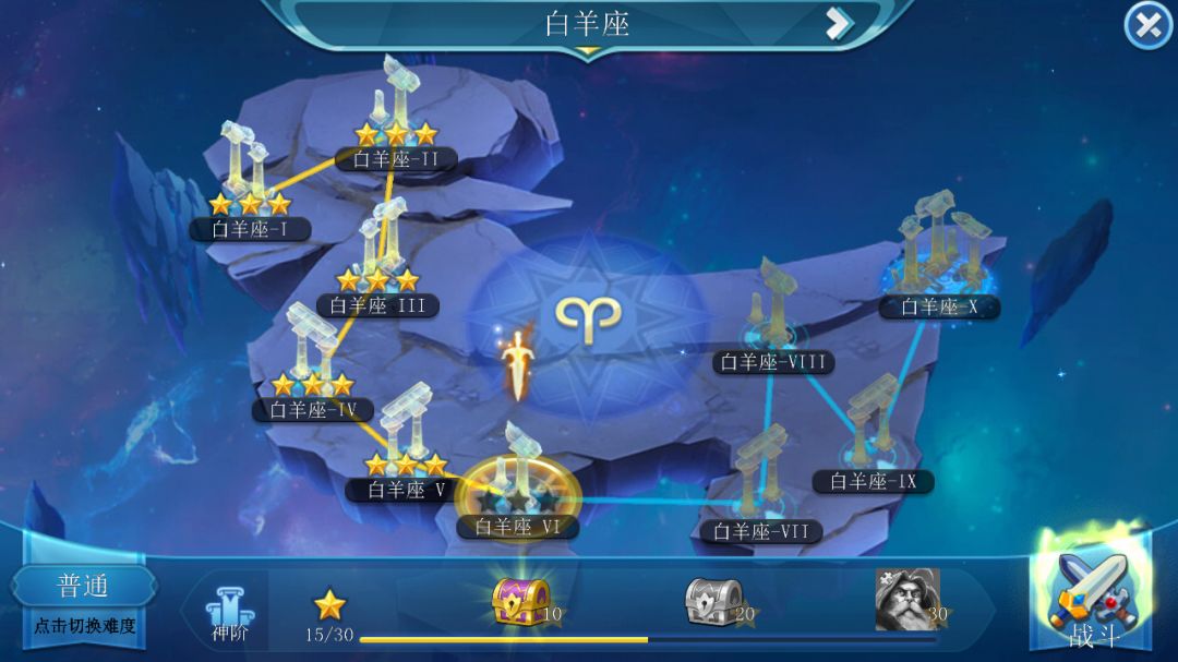 十二星宫构成主线关卡,通关主线关卡可以获得大量奖励。
