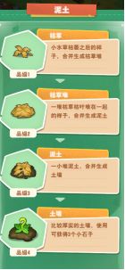 还有还有,森灵王如果一直对小水草置之不理的话,小水草是会变成枯草的哦!不过不用担心啦,即便是枯草,在小森灵里也是可以变废为宝的呢!枯草可以一直合并升级生成土壤,点击土壤就可以获得三个小石子(石头系列物品),小石子一直合并升级到五级,就能得到小型石堆,等小石堆发出绿色亮光的时候,点击就能获得初生苔藓嗷~获得苔藓的等级会随着石堆的升级而一起变高呢(据说最高级别的巨型化石能收获出小苔藓群呢)!Emm,至于苔藓嘛,森灵王们一直升级下去,就能得到各种各样好看的苔藓哦~~