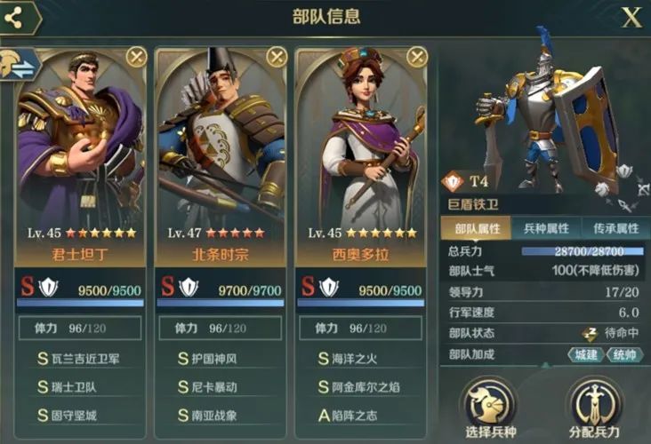 以及嘲讽队或嘲讽队的变阵:君士坦丁、北条时宗、织田信长。北条时宗自带技能护国神风能给自身提高120的力量属性(但需要受到的伤害增加20%),配合南亚战象可对全体敌军造成高额伤害,在战斗中能很好的压低敌军整体血量。