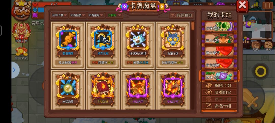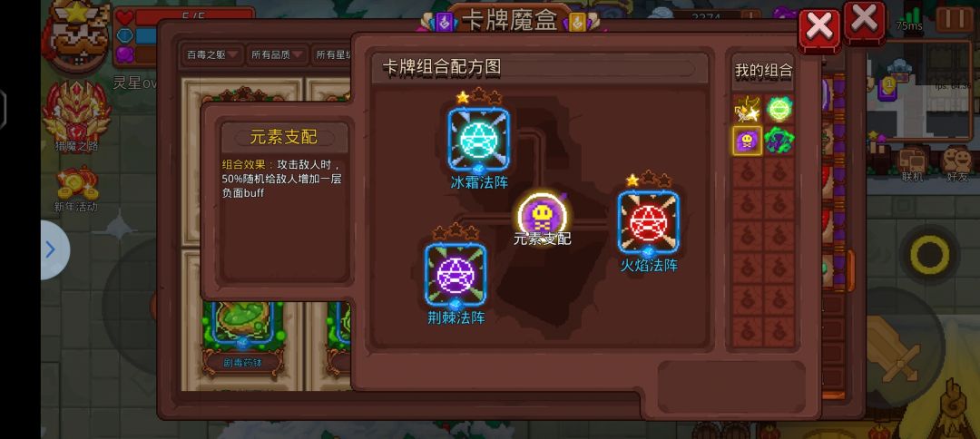 上图两个金卡有哪个带哪个,都有最好,然后搭配加火伤害,攻击概率触发火,然后火铁的两个组合看还可以带几张卡看情况组合。