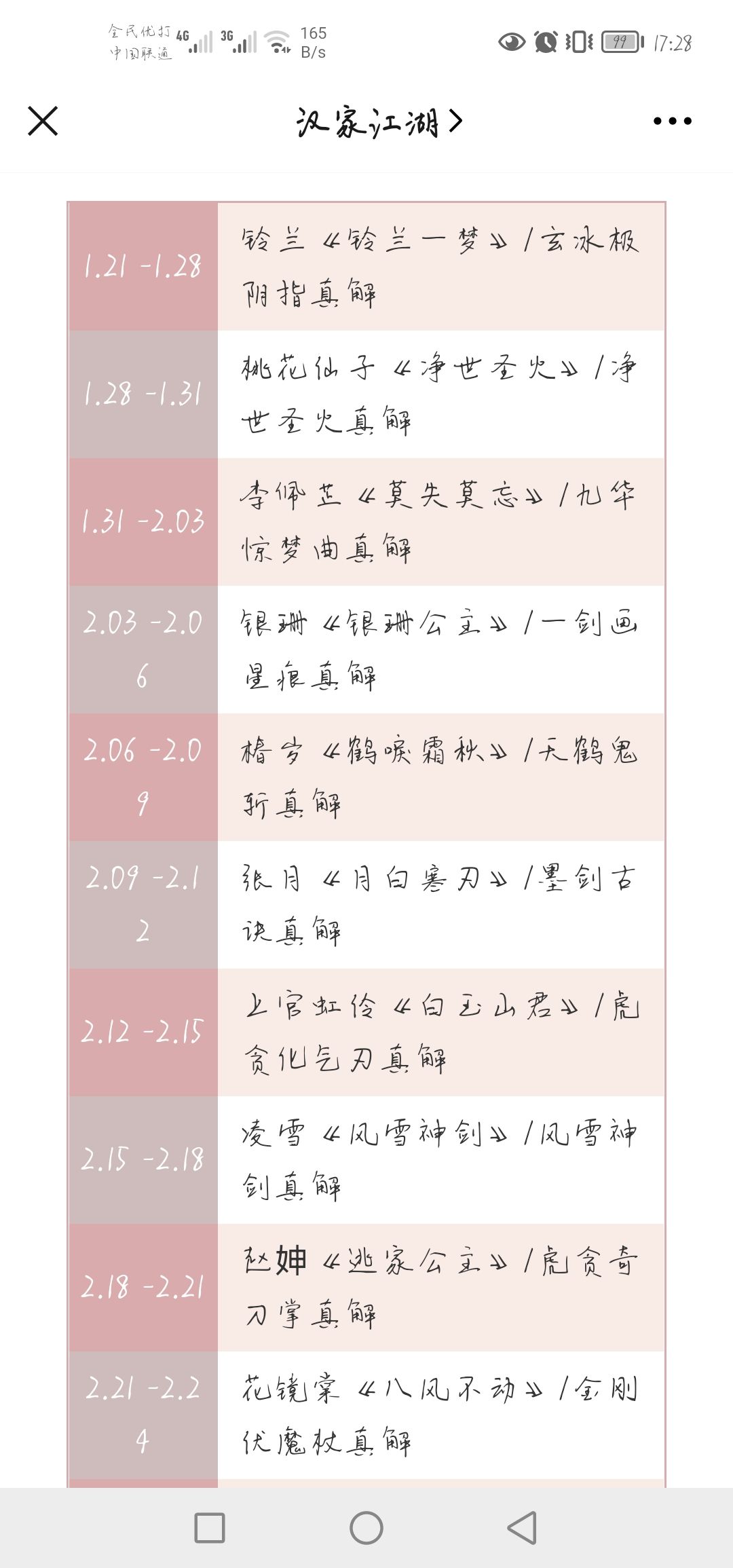 首先是这次活动时间是1月24日18:00到3月7日凌晨5点,这里萌新请注意,汉家江湖的日结时间是凌晨5点,所以实际结束时间为3月6日,可不要凌晨爬起来肝活动哦