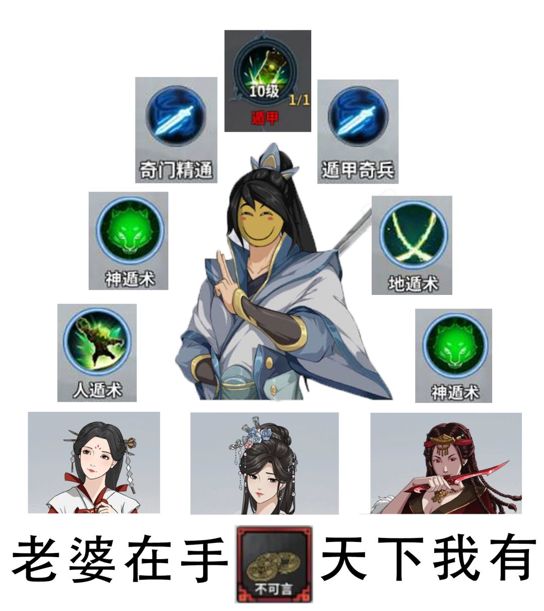 八门遁甲,控制门派,门派上限极高,任何侠客都能用,抽卡优先桃花仙子李佩芷花镜棠张少铃兰,太极拳可抽
