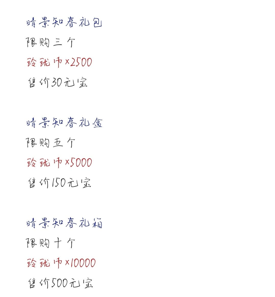 所有的活动币要在3月6日用完,画重点了!活动持续时间一个半月,所以刚入坑的小伙伴也不要慌,最好能充上一到两张月卡,路引是上周才开始的,奖励拉满的时间也是够的,但是性价比没有月卡高,这个看自己,月卡获取的大量银元宝用来买288银元宝3个珠子和1888银元宝20珠子的礼包,分别是腊月礼包和玲珑戏雪礼包,288总共两个,1888总共4个,用月卡获取的银元宝来买