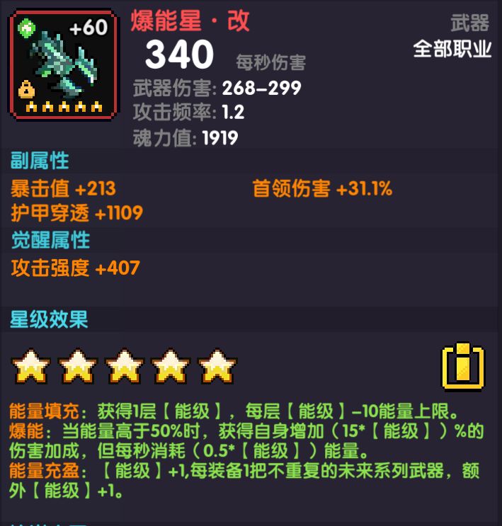 爆能星,在牧法高额的技伤加成下,全伤的收益是非常不错的。