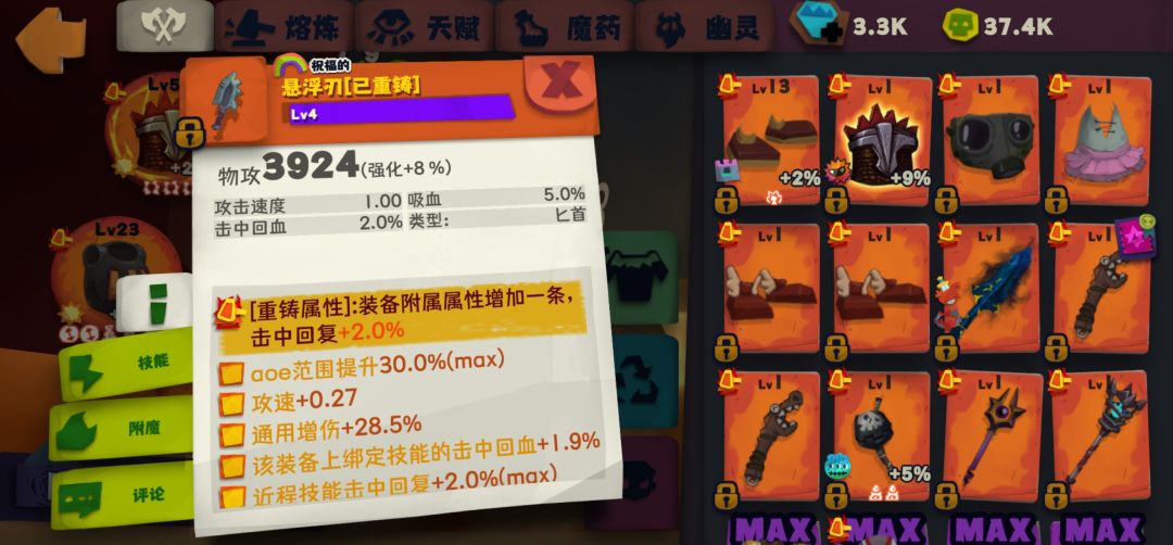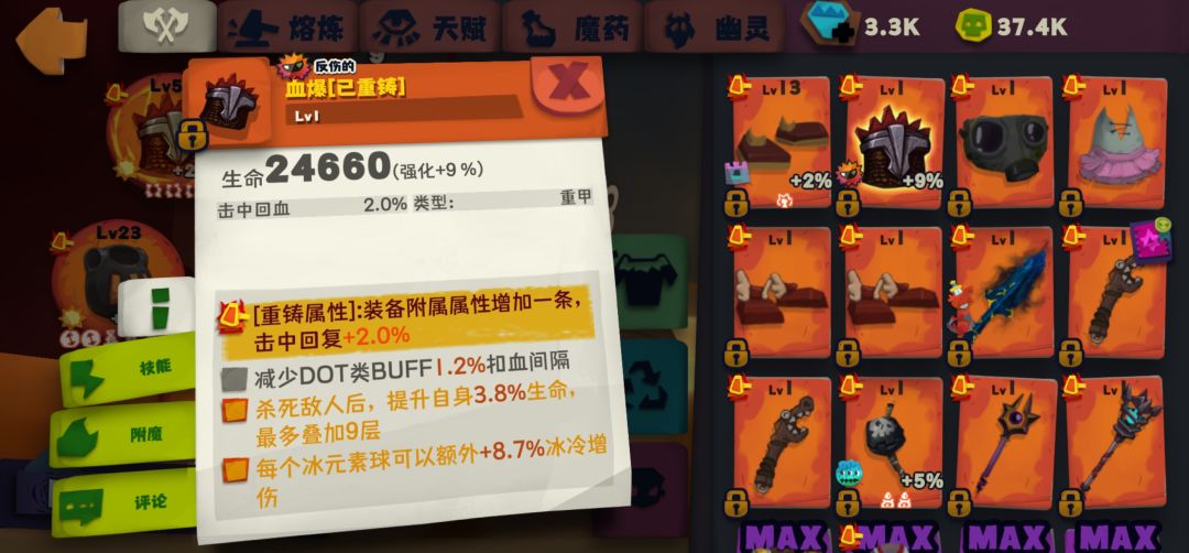 个人更喜欢重铸击回带来的刀刀血爆!现在光武器击回17%加上熔炉已经够30%