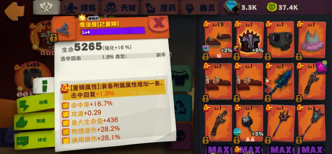 现在衣服差个悬浮范围,刷了好久了就是不出!血量现在46万攻击完全够用,等幽灵抓满有个70万就行了!有个魔法盾牌基本也死不了!