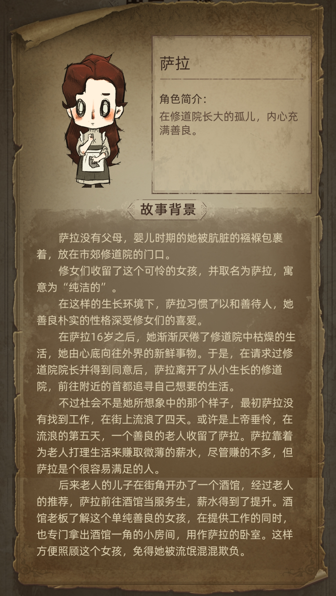 真的很斯莱特林,但同时又有拉文克劳的智慧、求知欲,以及格兰芬多的勇气。不过她最显著的特点就是对夏特莱的信任,以及她的利己主义,比如游戏里用他人去验证医学协会和教会对微生物的态度,所以我想分院帽应该不会犹豫吧。