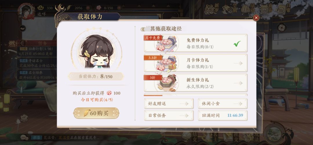 体力:没满级的话,建议买前三次,后面的体力太贵,不划算,满级的话,买一两次就行,看自己需求