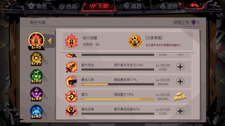 新天赋上限 20-25级 每级800书 增加属性维持不变