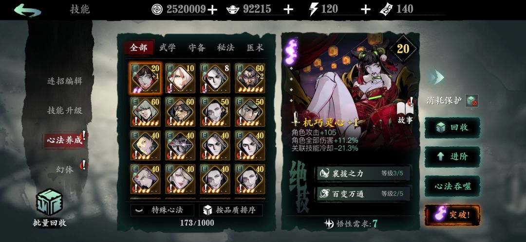 机巧要到紫二,暗夜飘香到紫一(减cd),火男,千机这些都是用来减cd的,现在还不缺伤害