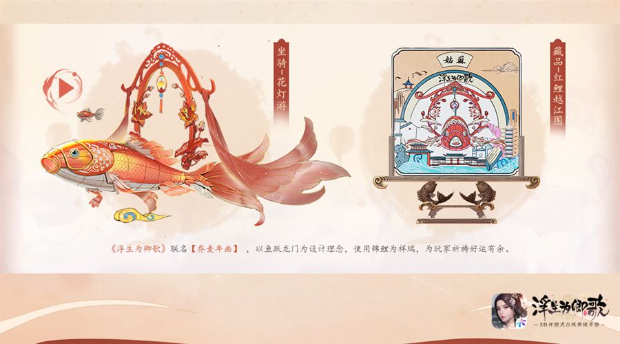 值得一提的是,本次画新年活动中的木版年画,是由中国非物质文化遗产“桃花坞木版年画”代表性传承人——乔兰蓉老师精心制作。乔老师以《浮生为卿歌》中的新年坐骑“花灯游”为核心灵感,将春节丰厚的历史文化底蕴在木版年画上一一呈现;除此之外,乔老师精心创作的木版年画也将在《浮生为卿歌》手游中复刻成为全新藏品,令阁下在游览天地山河的同时可以更深入地体验到国风传承中的历史之美!