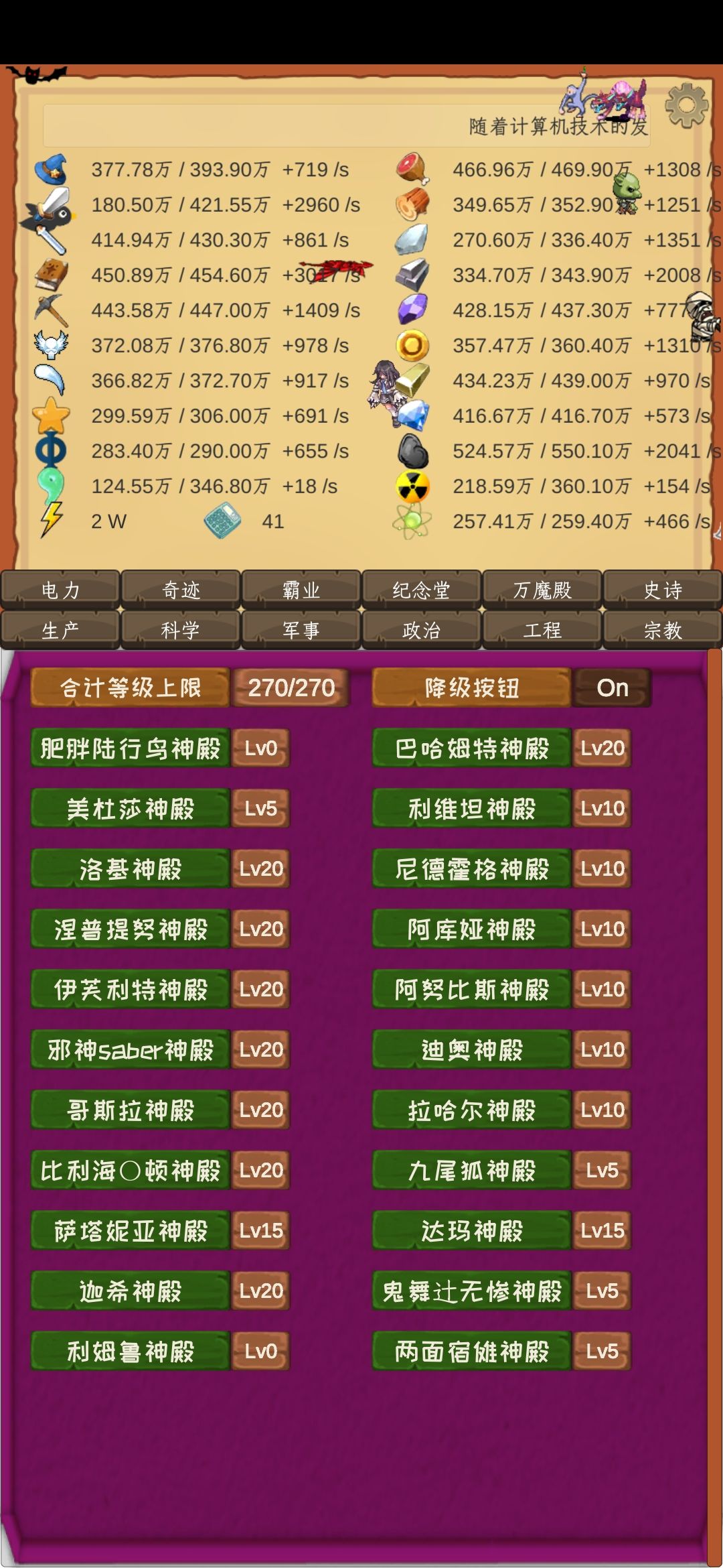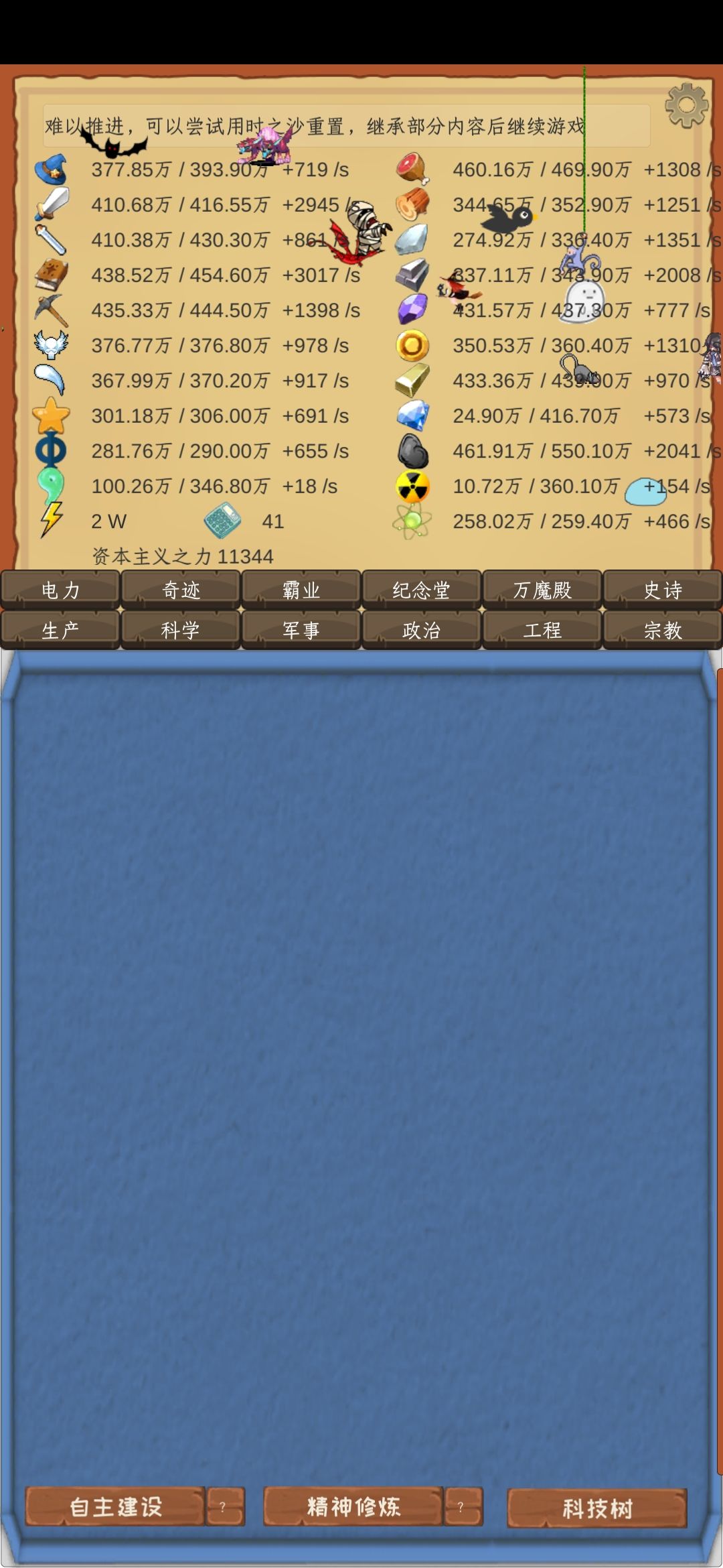 这里边有两个我印象深刻,黄金和信仰。一连串的科技都要信仰,最高的方尖碑的差60万,最低的也差10万,我又推了五六个VS才解锁完全(离谱)