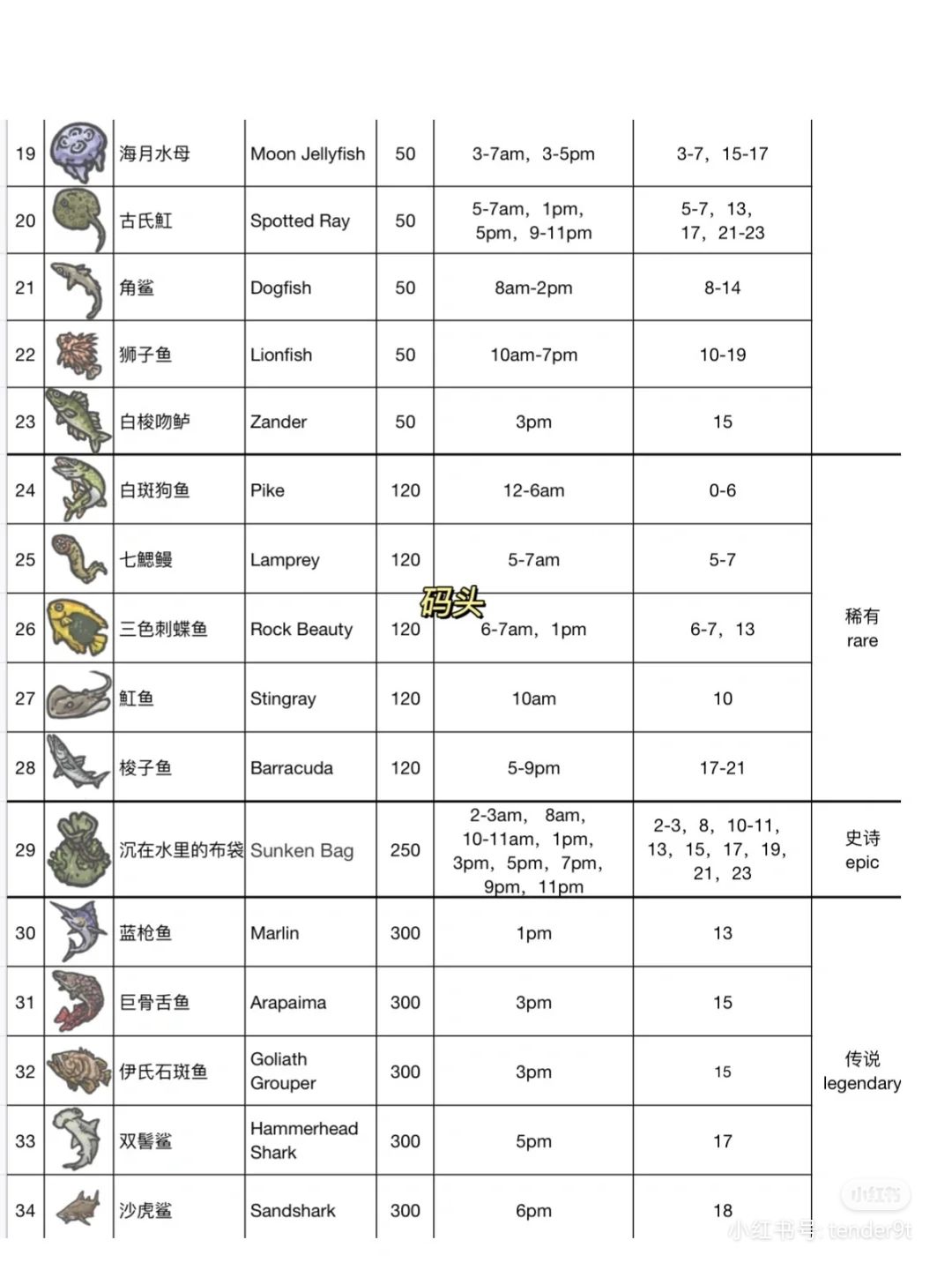 月兔漫游•全部鱼种钓鱼时间地点【已获得授权】
