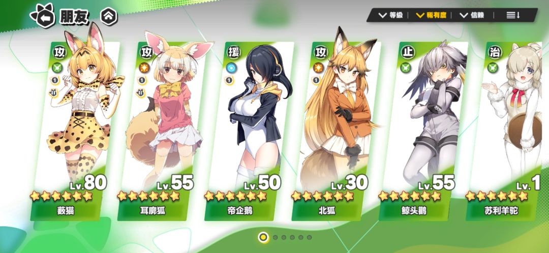 本来想玩骰子队来着,可惜直到关服都没抽到眼镜王蛇555,只好玩常规的两单体+两援buff阵容,现在想想好神奇诶,一测玩的骰子队,二测玩的狮子蓄力队,三测玩的萨巴鲁一拳超薮,个人不是很推荐一开始养群攻浮莲子,群攻只有对特定场合才比较好用,大多数还是单体boss(朱鹮好像对单伤害也很高)
